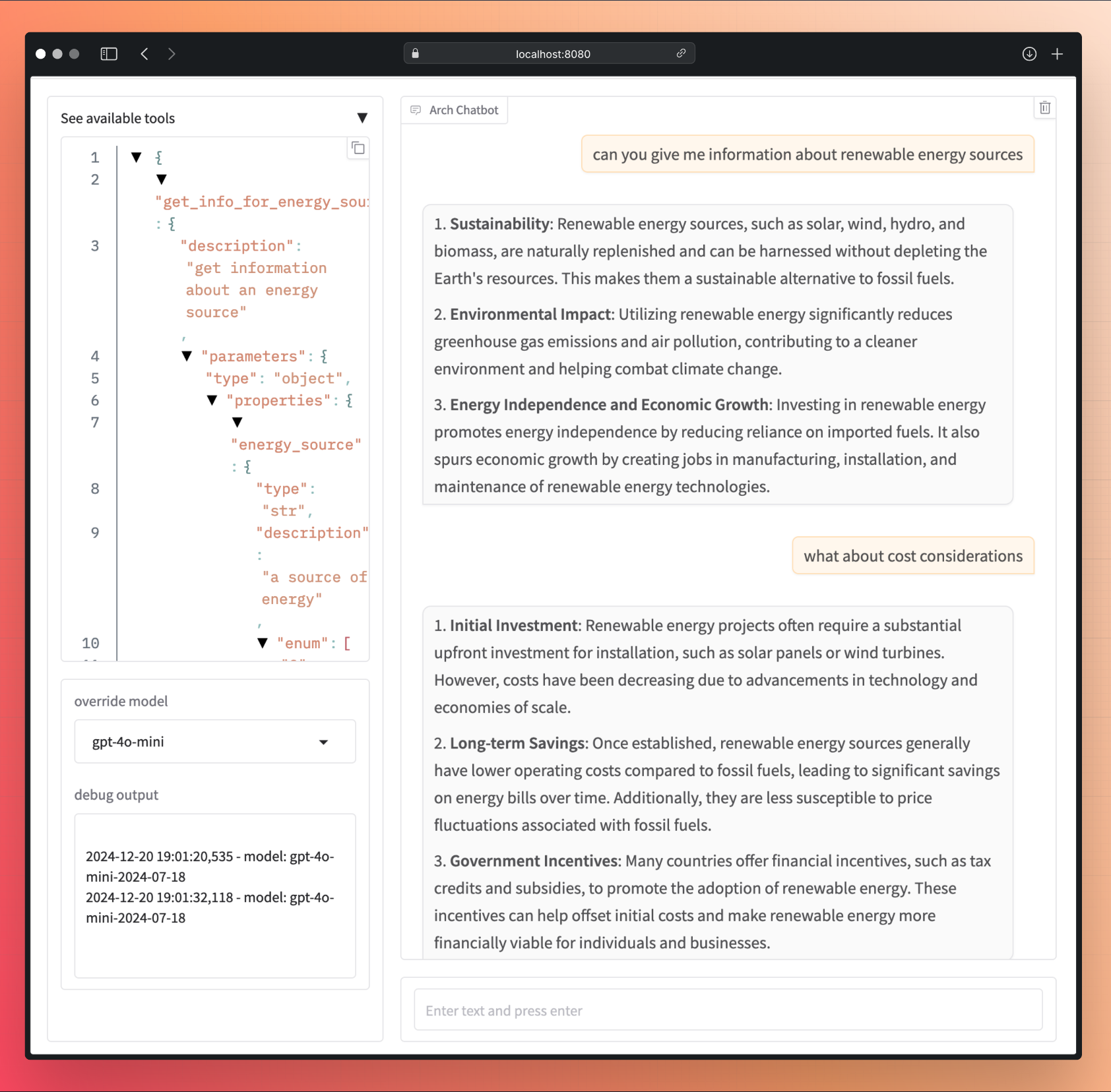 **[Plano]**: Found "get_info_for_energy_source" prompt_target in arch_config.yaml. Forward prompt to the endpoint configured in "get_info_for_energy_source"