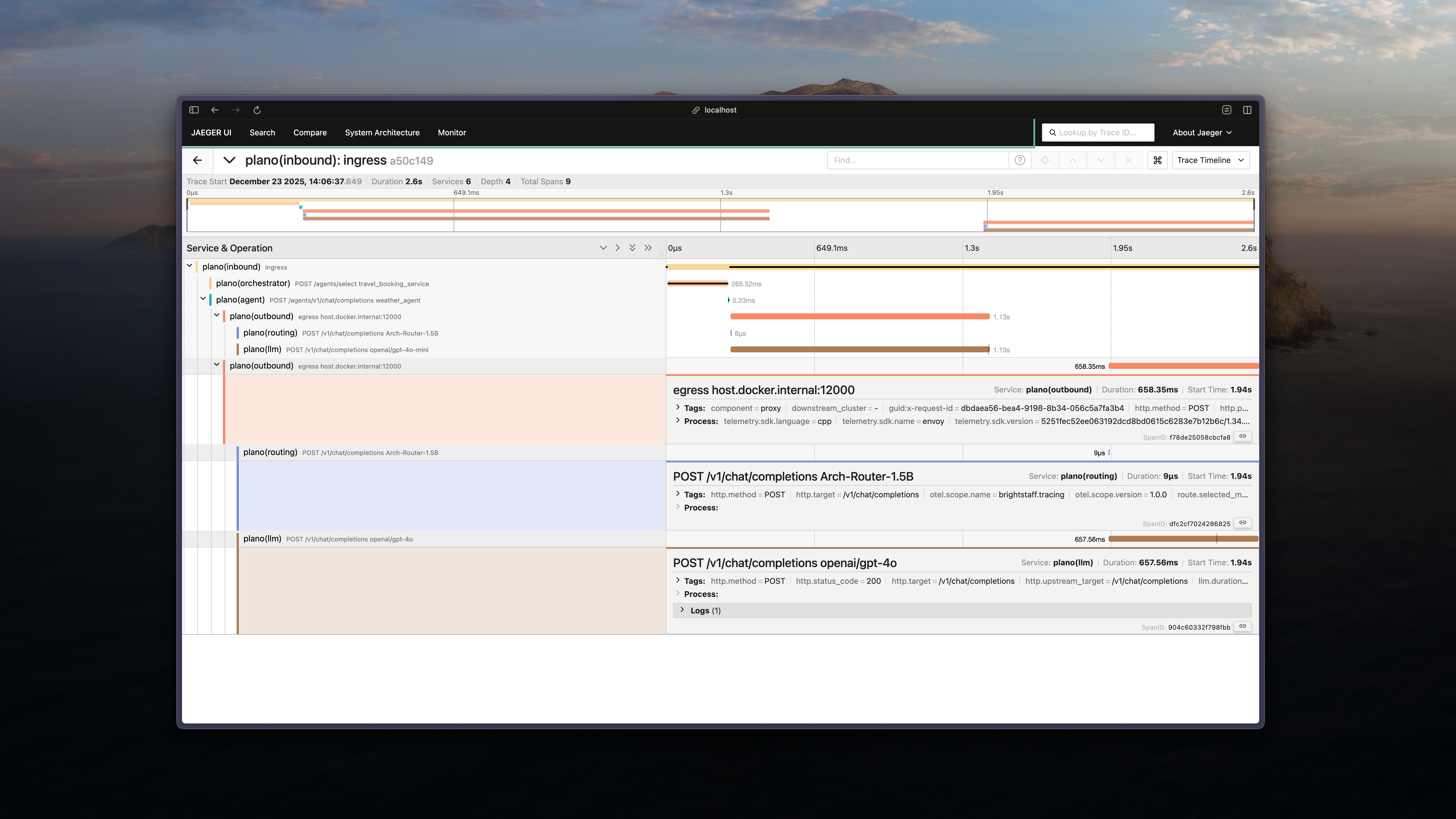 flow, enabling end-to-end tracing across the entire application. By using OpenTelemetry, Plano ensures