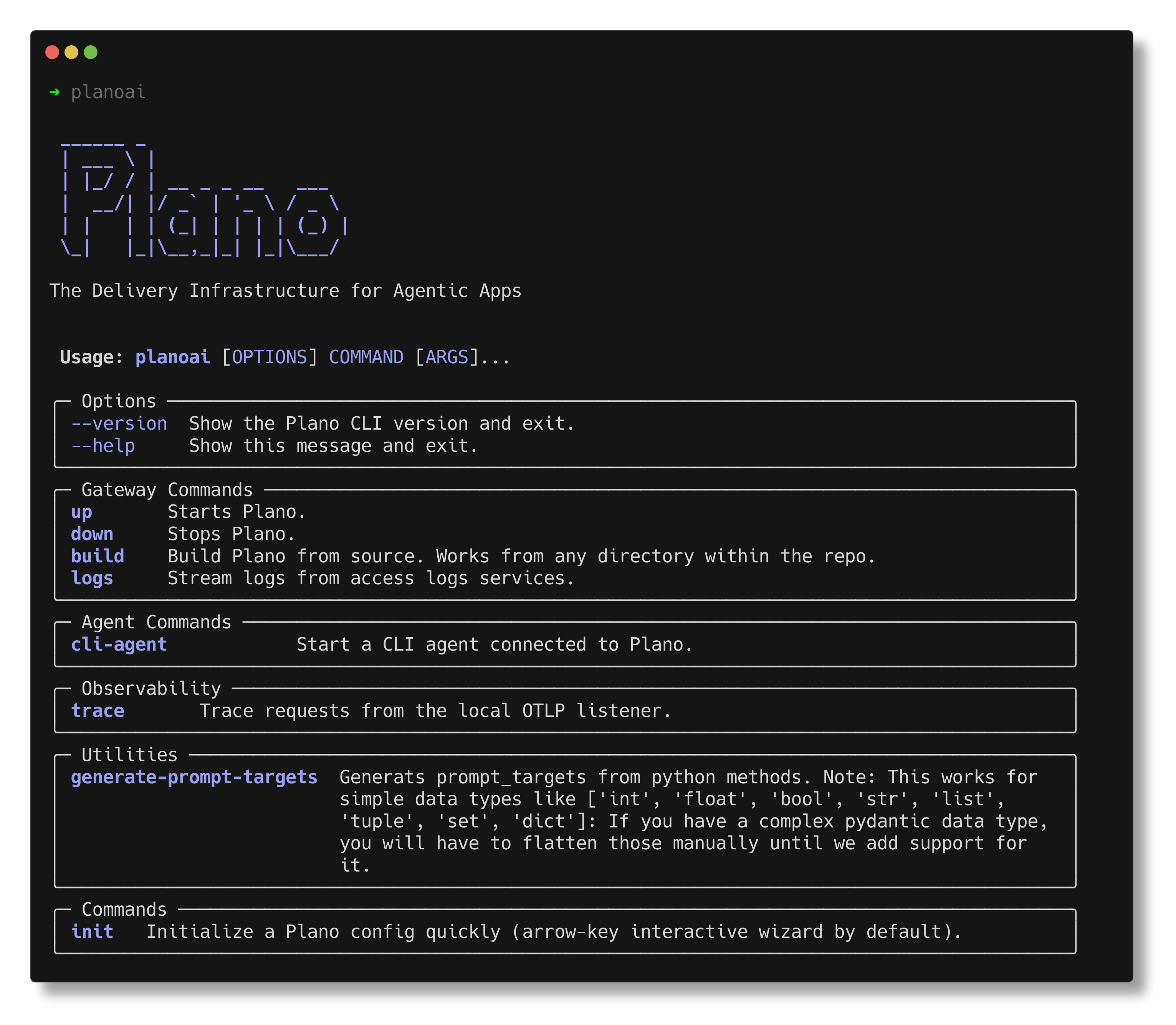 $ planoai [COMMAND] [OPTIONS]