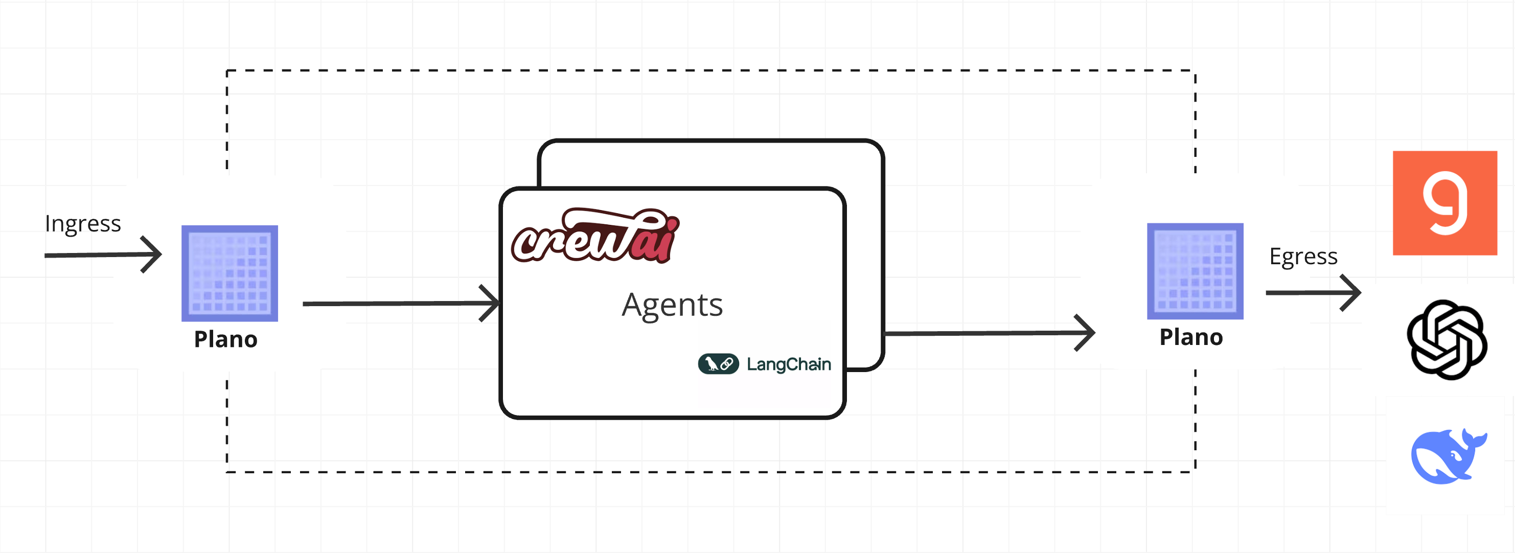 Response Reception and Forwarding: Once the LLM processes the prompt, Plano receives the response from the LLM service. The response is typically a generated text, completion, or summarization. Upon reception, Plano decrypts (if necessary) and handles the response, passing it through any egress processing pipeline defined by the application, such as logging or additional response filtering.